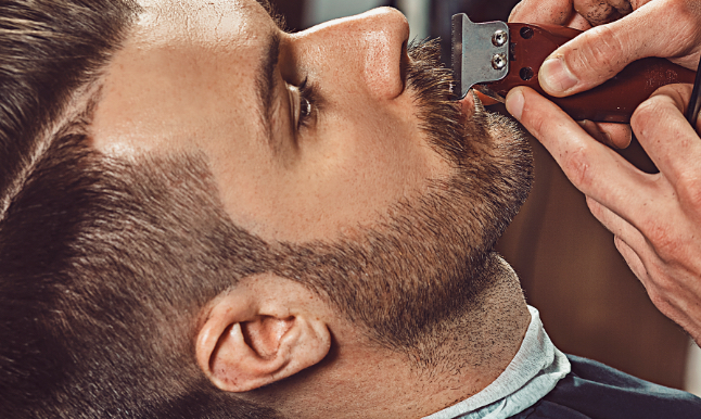 A service for short beards/stubble haircut by clippers and shaving.
